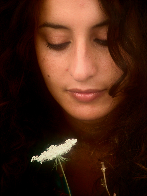 Guarda, io eliminerei quei fiori in primo piano, non aggiungono niente all'espressività della ragazza, anzi disturbano la purezza di un'inquadratura con il solo suo volto!