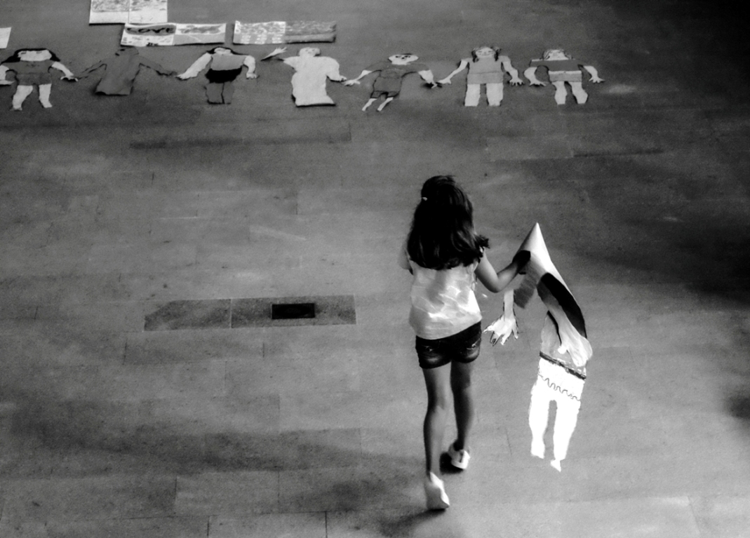 il senso dovrebbe essere la ricerca di un selfie o di un auto ritratto. Il compito dei bambini era quello di fare una immagine di se, quando uno finiva il suo disegno lo poneva solitariamente dove riteneva giusto. Un esercizio di auto analisi che i grandi si sognano...... Fotograficamente sarebbe un esercizio essenziale per un pò di consapevolezza.