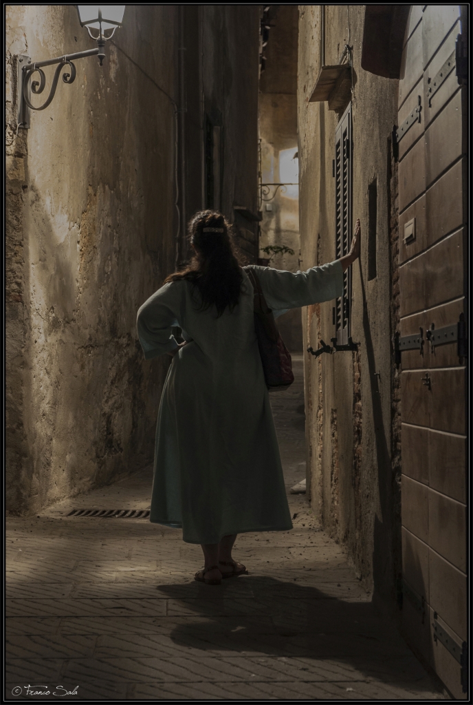 Mi piace come hai gestito la luce in questo vicoletto,hai reso un'atmosfera un po' cupa e molto suggestiva.Lei non sembra troppo convinta di continuare per la sua strada, forse aspetta un segno che la incoraggi. Mi piace molto  _________________