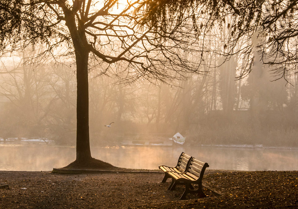 Le tue atmosfere inconfondibili , ed una bella luce dorata ad accendere ancora di sole la seduta delle panchine, immerse nelle tinte pastello del lungo fiume.
