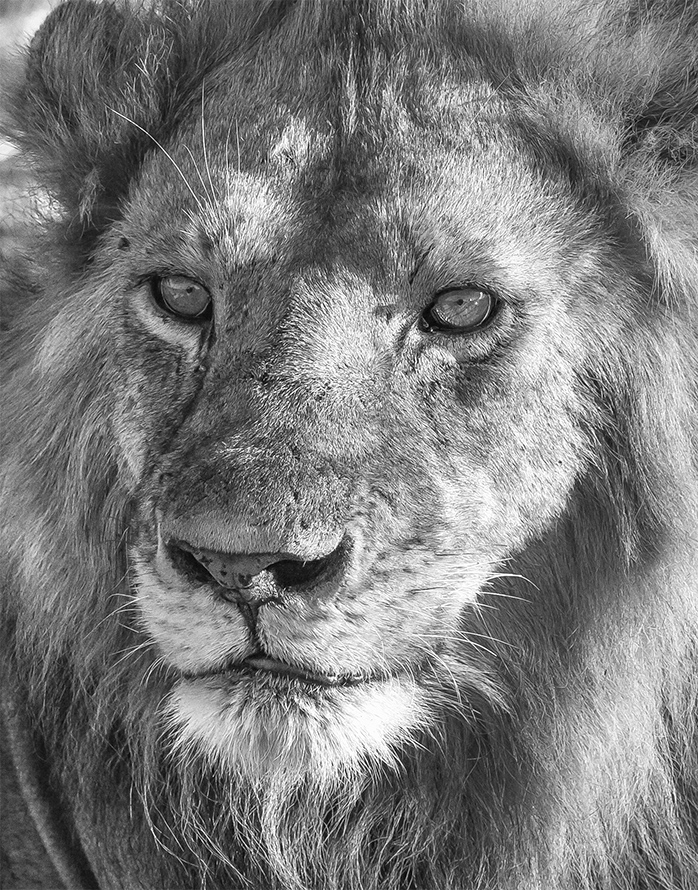 non sono un esperto di b/n ma mi pare di vedere dei bianchi al limite (zona barbetta a dx), molto medi (grigi) e pochi neri (solo narici)
