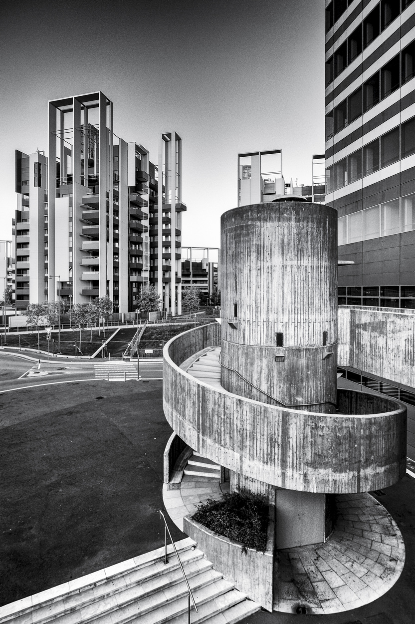 Mi piace un sacco sia la conversione che la scelta della sovrapposizione con il palazzo a sx formando una diagonale con la scala o rampa in primo piano. Solo la chiusura a sinistra non mi convince, forse stretta. Complimenti.