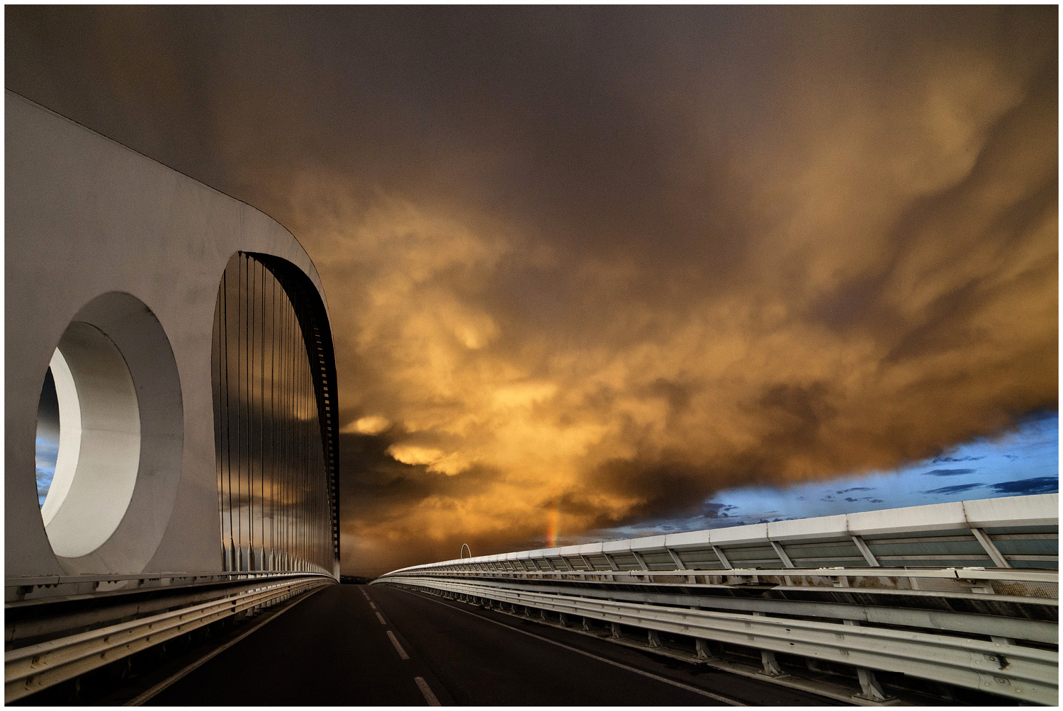 Vero ma avresti perso l'arcobaleno. Questo scatto e' in funzione di quel piccolo fascio di colori. Ponte strada guard rail triangolo azzurro tutto guida a quell'angolo...o almeno questa era la mia intenzione.