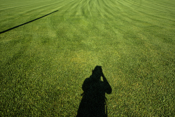 C) - tu fotografi l'ombra che fotografa il prato;