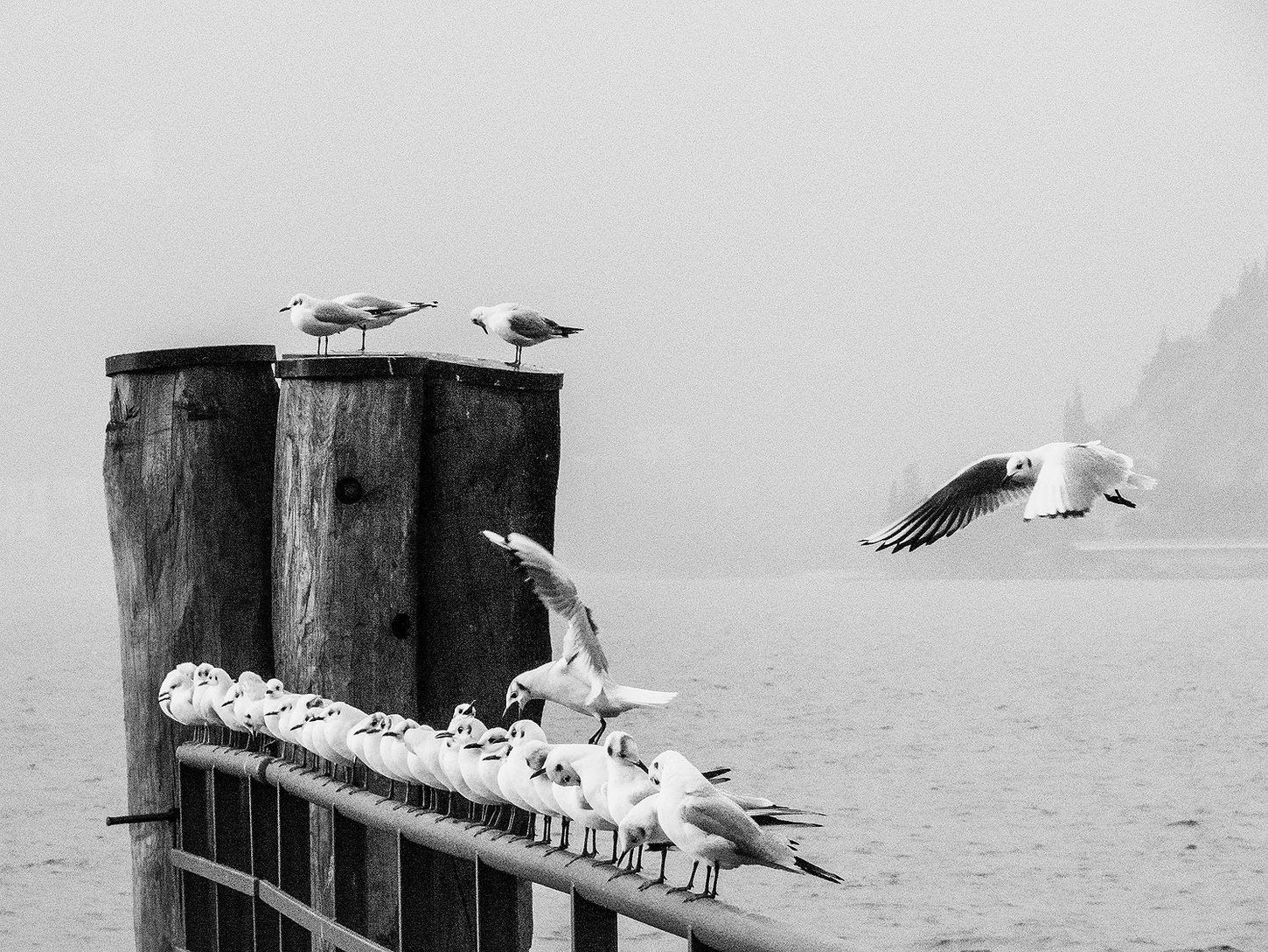 una scena interessante, un'aggregazione di gabbiani dove si denota sempre come in tutte le società ci sia sempre qualche prepotente...premesso che nelle foto di natura preferisco il colore, in questo caso il b&w lo posso anche digerire, ma non la grana.