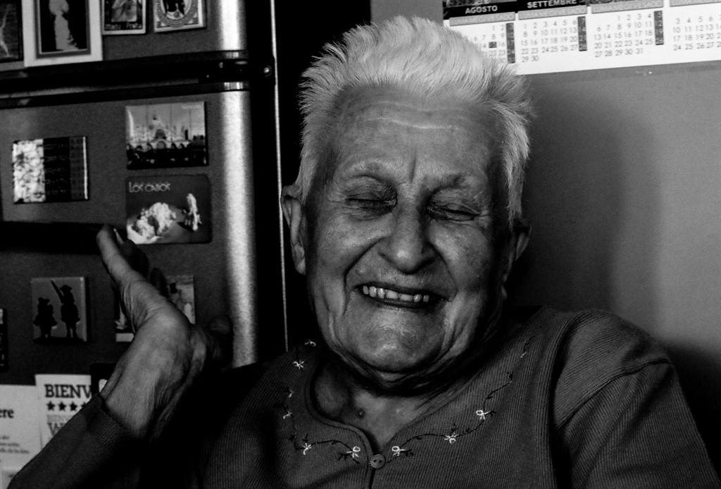Ho scelto il bianco e il nero perché il colore delle dispensa dietro era.uguale a quello della maglietta della zia e mi dava un po fastidio; inoltre anche il frigo dietro con le calamità rendeva la foto più dispersiva. Nonostante l espressione del viso l attenzione e l occhio si focalizzata sulla calamita. La scelta della dominanza scura era proprio data dal cercare di minimizzare la figura del frigo dietro, non intendevo cercare di aumentare la visibilità delle rughe. Effettivamente però intervenendo così si mettono in luce. Diciamo che non era mia intenzione Però, in realtà, non mi dispiace vedere le rughe esaltate in un viso. Alla fine rappresentano la storia della persona... è anche vero che non bisogna esagerare!