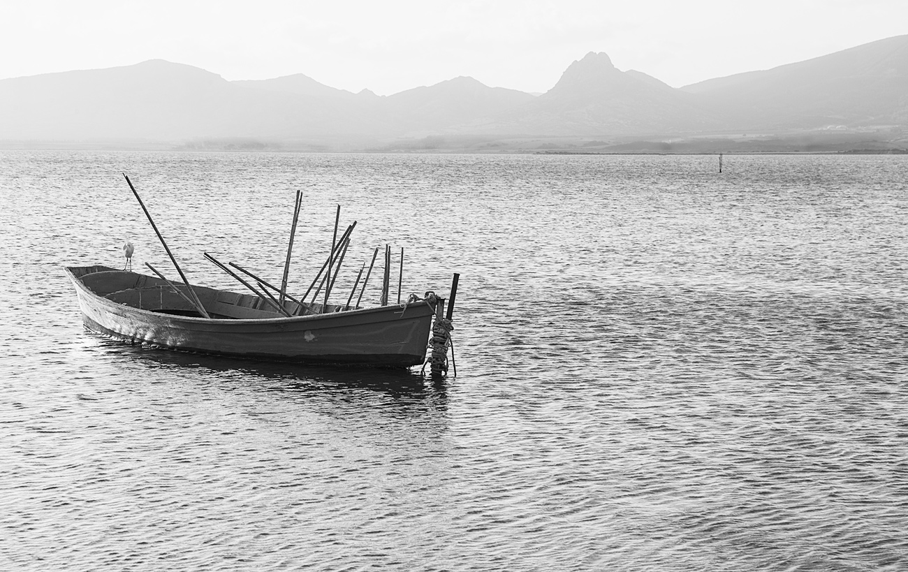 Il riposo del guerriero.Bella questa barchetta alla fonda che trasmette una sorta di calma armata con tutte quelle canne sicuramente adibite a sostenere attrezzi da pesca.Ottima composizione ed adeguato il bn. Ciao