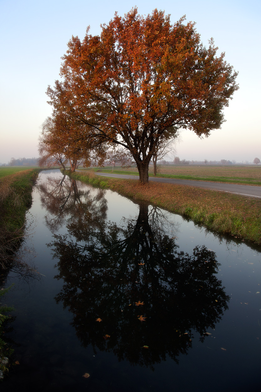 Spettacolare pur mostrando uno scenario semplice è abbastanza usuale, eppure, spettacolare è per me l’aggettivo migliore per definirla. Spettacolare è pure il riflesso e spettacolari sono pure le foglie abbandonate a galleggiare sull’acqua oscurata dal riflesso.
