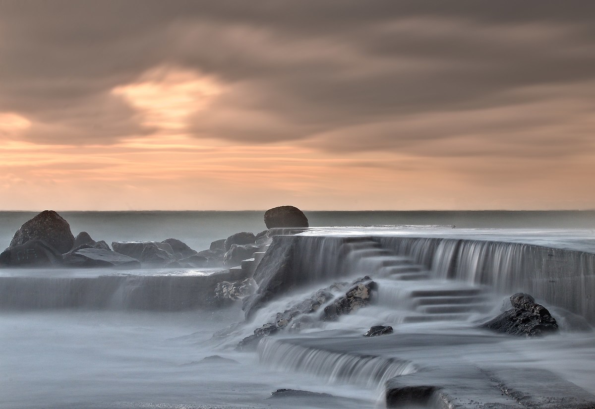 Bellissima, l'effetto dei tempi lunghi con il mare in cascata che trasforma tutte le sagome e' molto d'impatto.