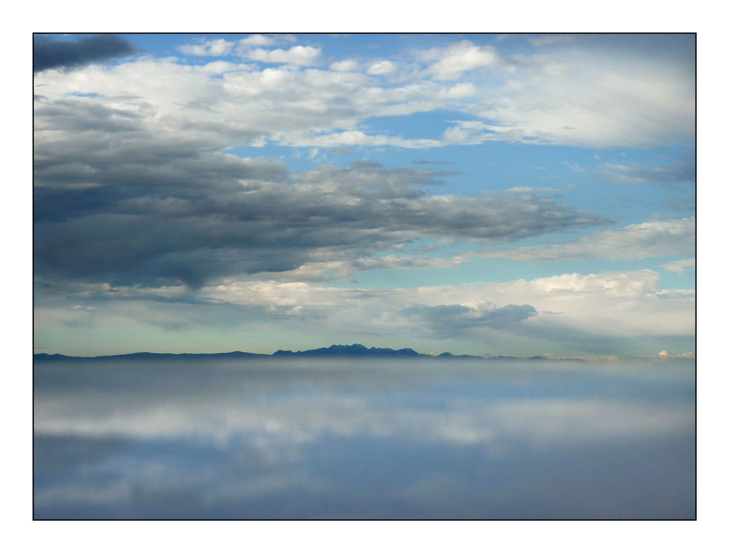 i monti sembrano galleggiare nell'azzurro in questa immagine che infonde quiete e serenità.