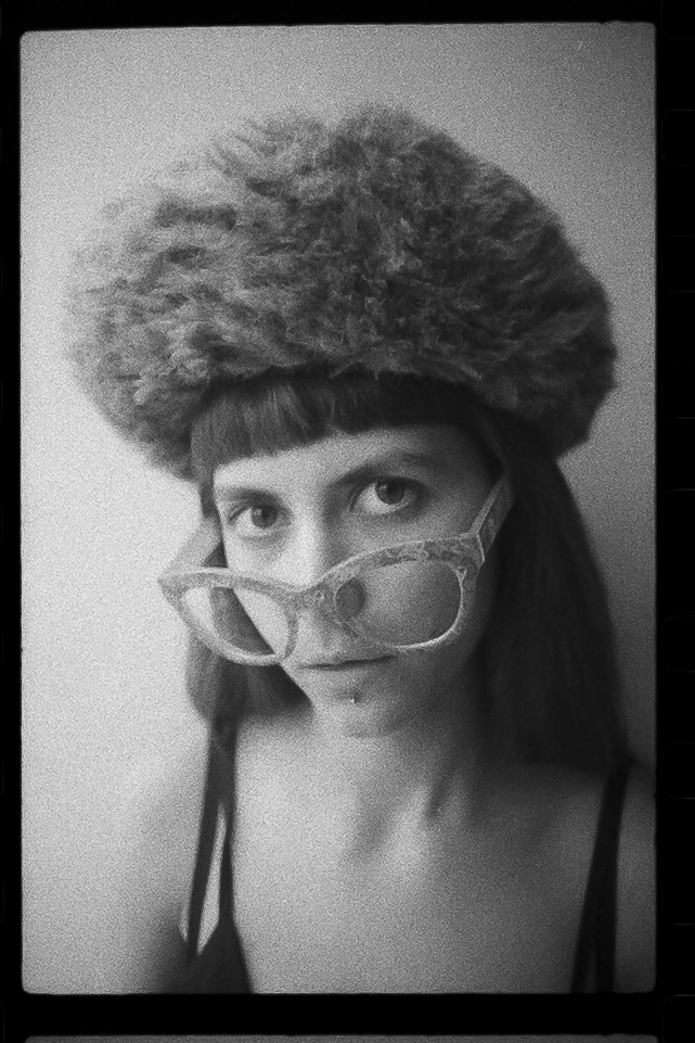 Gli occhialoni calati ed il piercing lasciano un tono scanzonato alla ragazza che fa contrasto con il il vecchio copricapo russo, si giocava a fare ritratti con le cose in studio ed è in questo accostamento che l'ho voluta ritrarre.