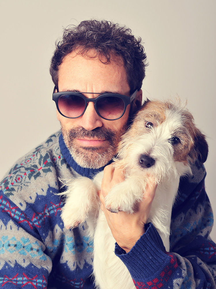 Come lodo, sono stata colpita, nella simpatia ed ottima esecuzione del doppio ritratto, dalla non visibilità del tuo sguardo, otre le sfumature blu delle lenti, mentre gli occhietti vispi del cane, sembrano recivere delega , e ci fissano attenti...