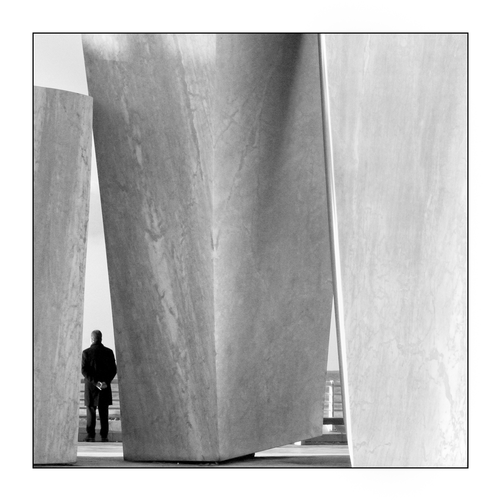 Ciao Guido, forme particolari e il soggetto incastonato, quasi costretto tra esse. Buona immagine e b/n elegante, dai toni chiari molto piacevoli.