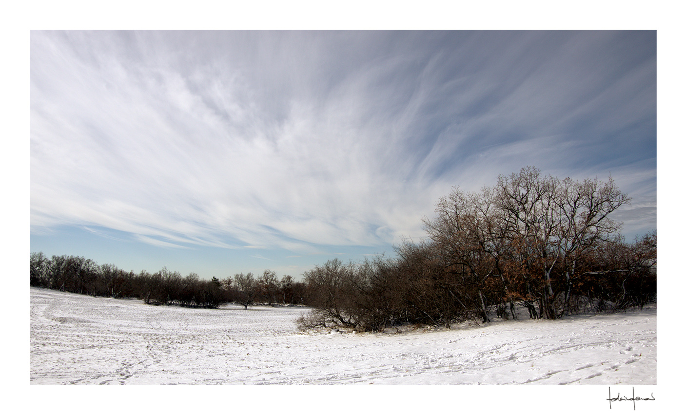 Il "disegno" delle nubi sembra assecondare e proseguire le fronde degli alberi.