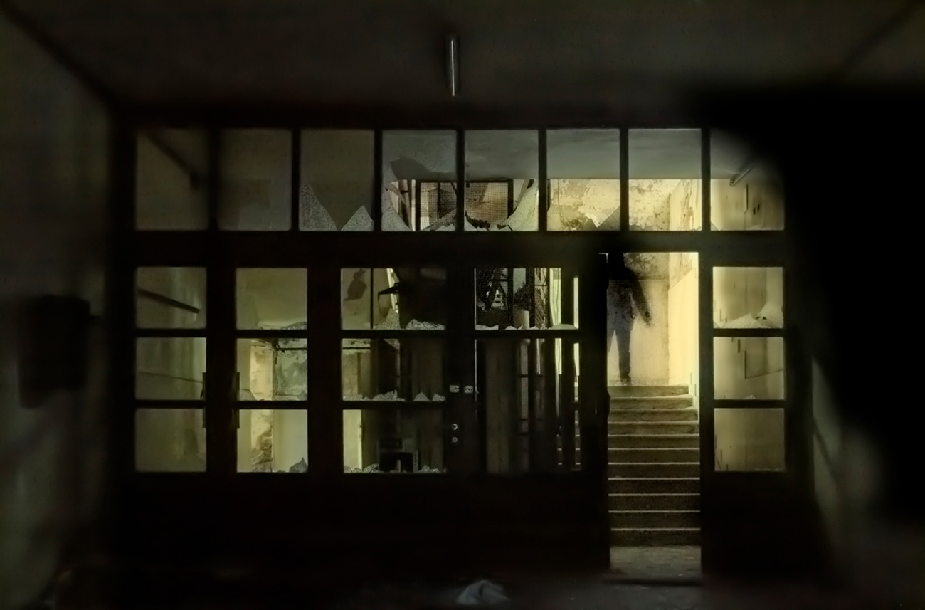 Adoro il fascino di questi luoghi..misteriosi,inquietanti ... uno specchio di paure interiori ... silenzio interrotto da vetri che scricchiolano,porte che cigolano, acqua che gocciola...e oscure presenze che son li sempre a fianco a te... hai reso bene tutte queste sensazioni,luci e ombre ben gestite e colori acidognoli a caricare l'atmosfera di angoscia,mentre l'oscura figura è sempre più vicina... sta arrivando a prenderti. ..