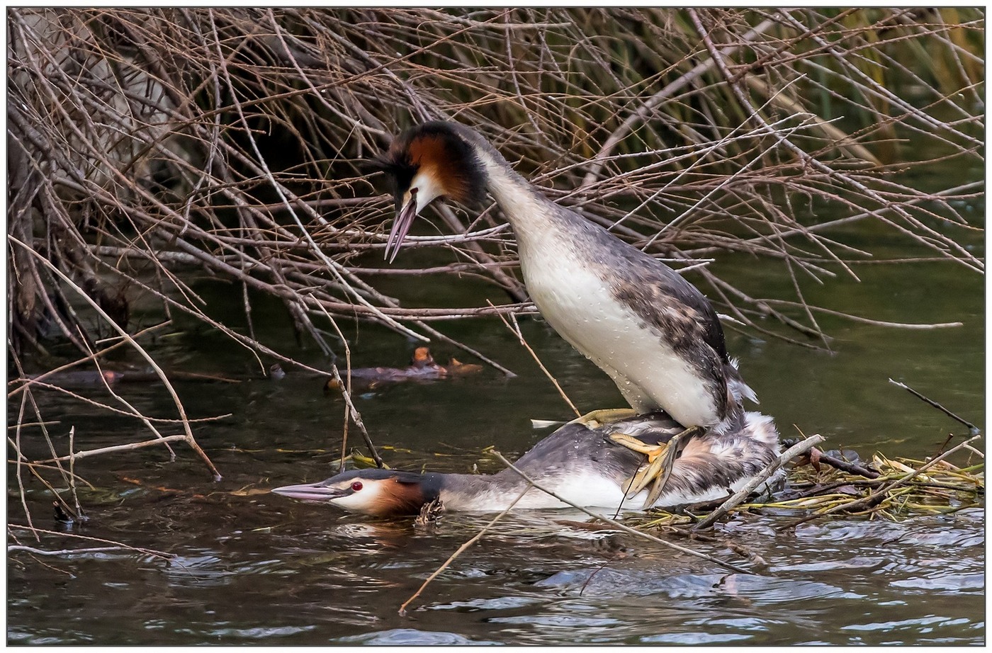 Valentino, per la verità questo scatto, insieme a tutta la sequenza, è un po' frutto della fortuna; me ne stavo tornando a casa con le pive nel sacco tutto infreddolito dopo una ricerca vana quando in una zona appartata del laghetto ho intravvisto un po' di movimento... ne ho approfittato.