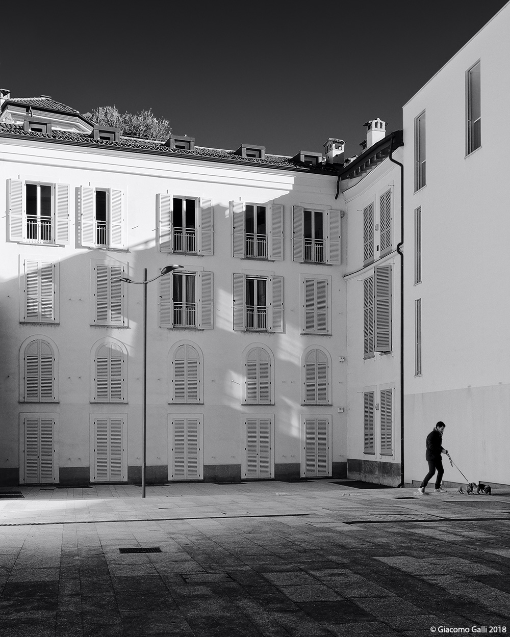 L'Angolo. Un angolo in cui sono racchiuse architetture diverse , persiane e finestre modernissime. Bello lo stacco che opera il tubo della gronda tra vacchio e nuovo, mi piace la presenza umana e canina che lo ravviva . bello il bn e sulla composizione niente da dire è bella (anche se sono fanatica degli angoli Rolling Eyes )