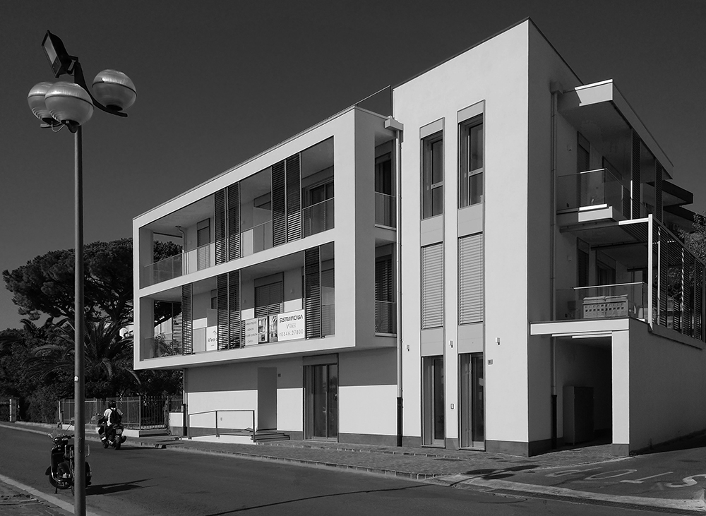 Secondo me questa, naturalmente trattata in bn come la prima, è più completa. In più avresti anche l'ombra del lampione che ti porta verso il fabbricato.