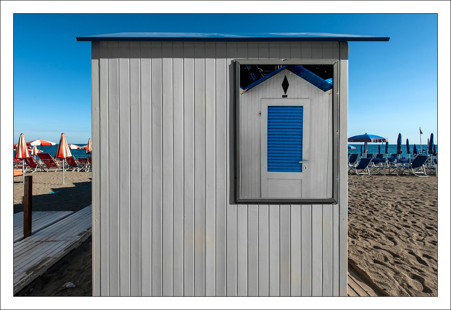 In genere catturiamo in un riflesso tutto ciò che il materiale riflettente riporta fedelmente (penso ad un paesaggio ad es) ,meno spesso siamo capaci di “creare” un’ immagine nuova con esso, imprevedibile cattura che l occhio coglie. Stavolta hai fatto di più.Con tua conclamata abilità compositiva racconti in un solo scatto Molto più di un riflesso...e qui scatta la “riflessione “a cui,secondo me,Guidi. Ci porti, come in gioco di scatole magiche’, nella magia del tuo mondo di luce di salino e di colore . Uno sguardo avanti: il mare appena accennato ma presentissimo, i due Bagni diversi ,orme a dx passerella a sn e poi “lei” la cabina che ,come emblema regge e ci mostra lo sguardo indietro, quella fila che non solo immaginiamo ma vediamo chiara , quadro nel quadro. Ma si sa’ “Riflettere è ascoltare più forte” ( SB ), ci porti per mano a farlo. Ed è un piacere. Che è bella nn l ho detto ma è come se...