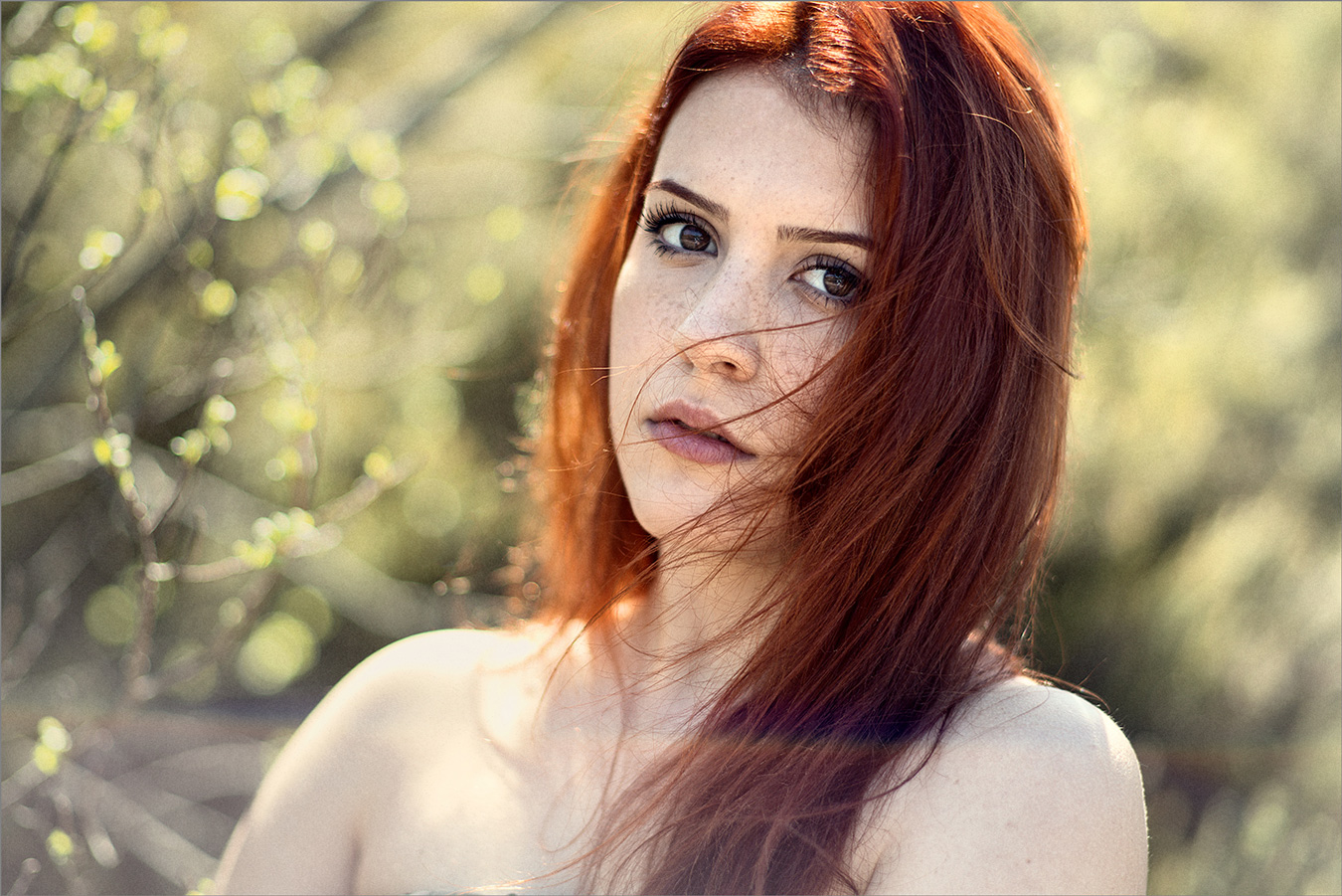 Non saprei scegliere tra questa e la precedente, entrambe splendide. Questa ragazza è bellissima,Un velo di timidezza che non riesce a mascherare però tanta sensualità. Occhi magnetici e sguardo forte. Forse un po incerto il taglio in alto,e un pochino troppo alte le luci sulla spalla,ma piccolissime cose. Trovo bellissimo lo sfondo e i contrasti cromatici che va a creare con la sua delicatezza contrapposta al vibrante rosso dei capelli.Molto naturale il viso.Anche la dinamicità data dalle ciocche sul viso aggiunge un qualcosa a questo splendido ritratto. Insomma,credo si sia capito che mi piace Ciao