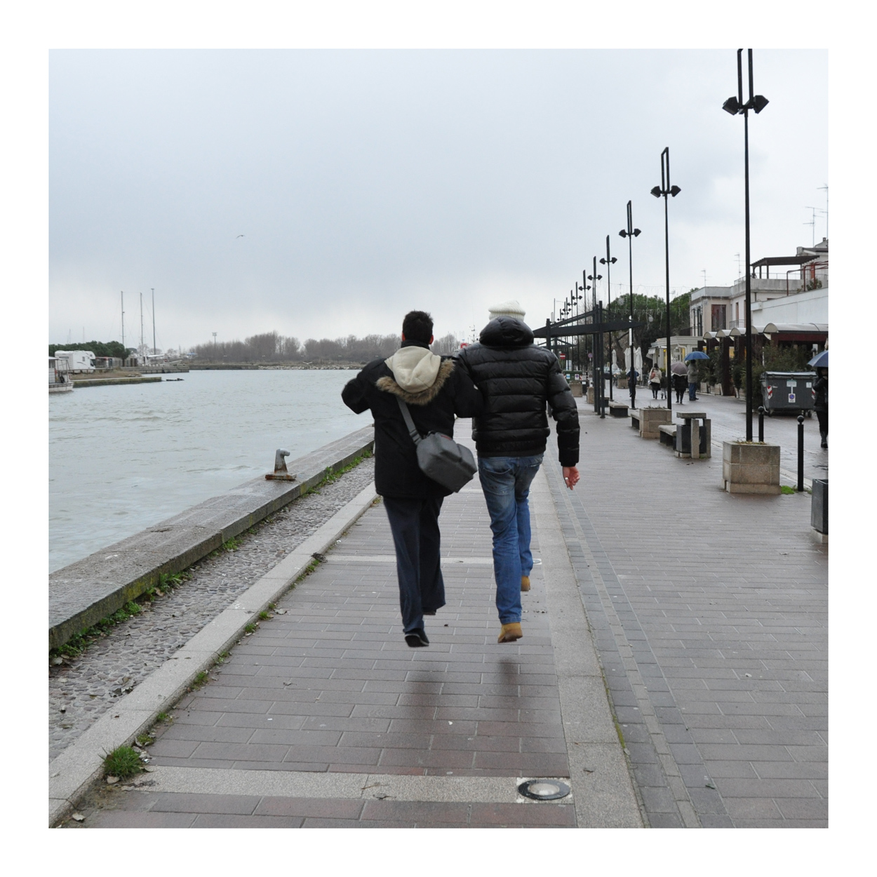 Sono mio figlio ed un mio amico che si divertivano correndo in sincro lungo il porto.