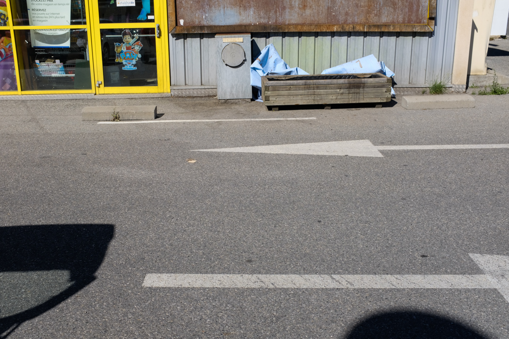 Si tratta di un negozio che fa parte di un centro commerciale. Il momento dello scatto mi ha colpito bene ma ormai non so più se per il referente reale o il risultato fotografico. Forse se avessi fotografato il complesso la foto sarebbe stata migliore (bisognerebbe vedere) ma avrebbe avuto più senso con più elementi a contestualizzare? Sinceramente non ne ho idea.