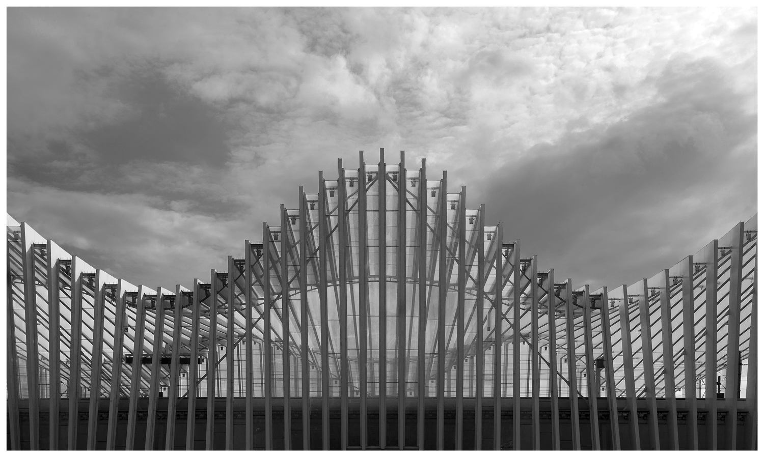 Il bn morbido ha un suo motivo, la struttura e' bianca e contrastarla molto l'avrebbe fatta percepire come scura (avevo contrastato e scurito di piu' anch'io ma sono ritornato sui miei passi), il secondo motivo sono i leggerissimi riflessi sui vetri della struttura centrale che scurendo perdono un po' di dettagli.