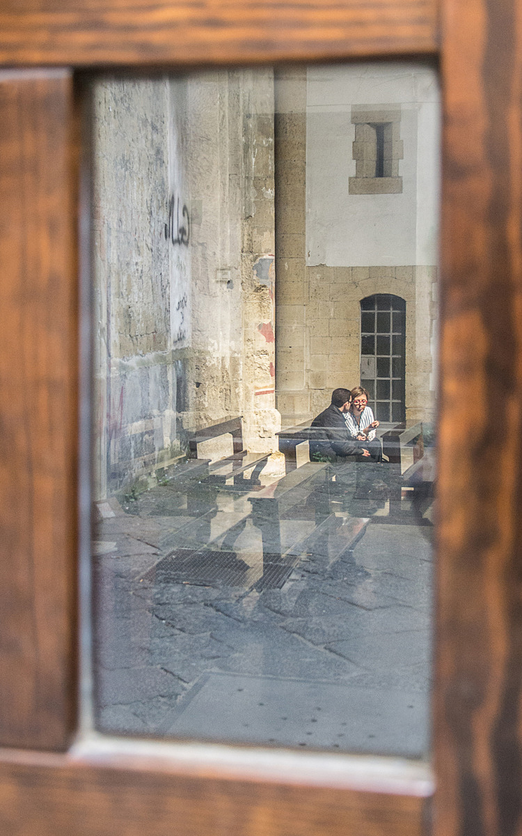 Un momento intimo catturato con molta discrezione. Con me e con i riflessi colti attraverso una finestrella, sfondi una porta aperta.