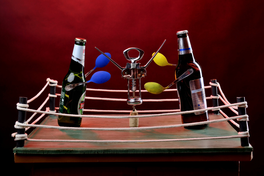...che dire...fantasia da vendere, tempo per la realizzazione, tecnica fotografica e set di luci, ne leggo 3 ma potrei sbagliarmi... il tutto per dare vita ad un importante incontro di birrox: immagino che poi te le sarai bevute tutte e due.