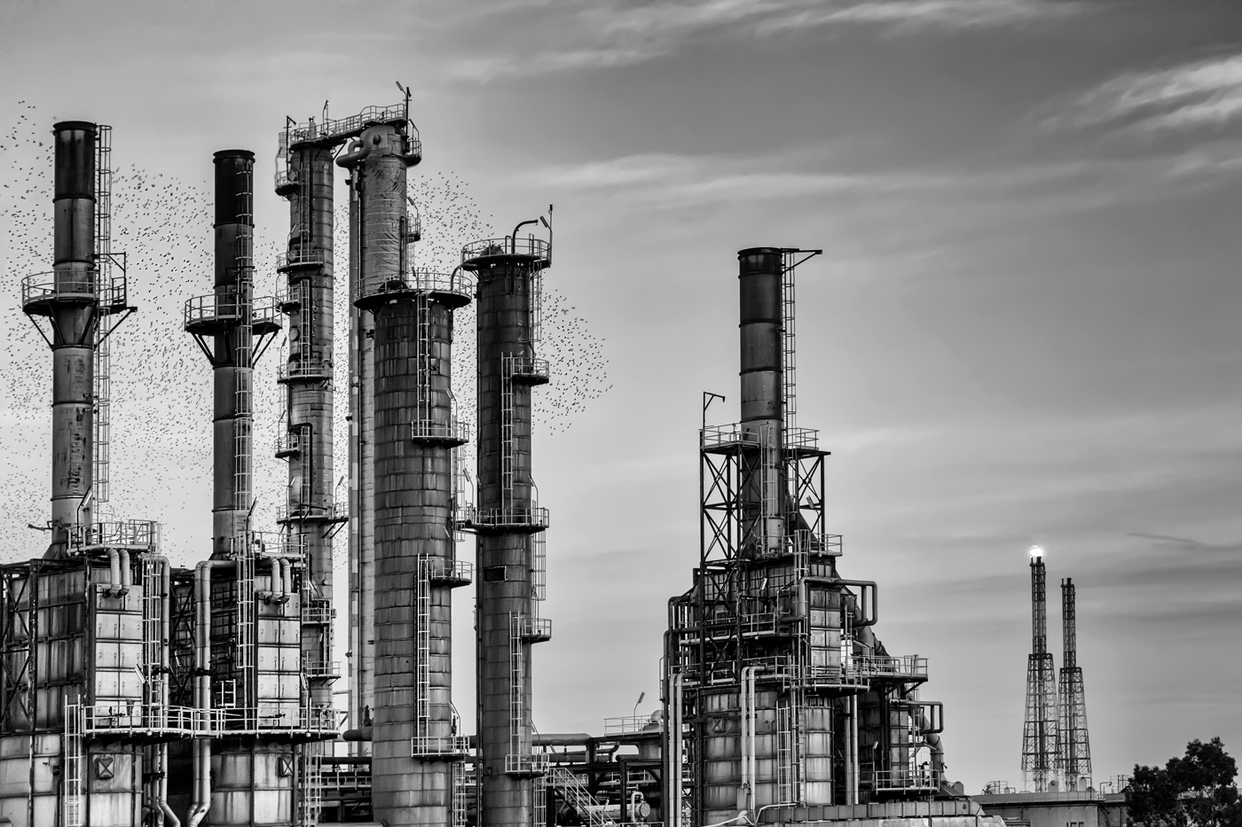 Commistioni in questa là dove nella precedente c'era una separazione netta di 'mondi' . Paiono prevalere qui (lo leggo come tu l'abbia quasi voluto sottolineare) i disastri dell'uomo che erge cattedrali nel deserto . Mi piace particolarmente la resa del brillante ,luminoso, bn (non lo saprò MAI fare Rolling Eyes ) , la chiarezza della materia e la scelta di lasciare quell'albero a dx che timidamente resiste . Sarroch?
