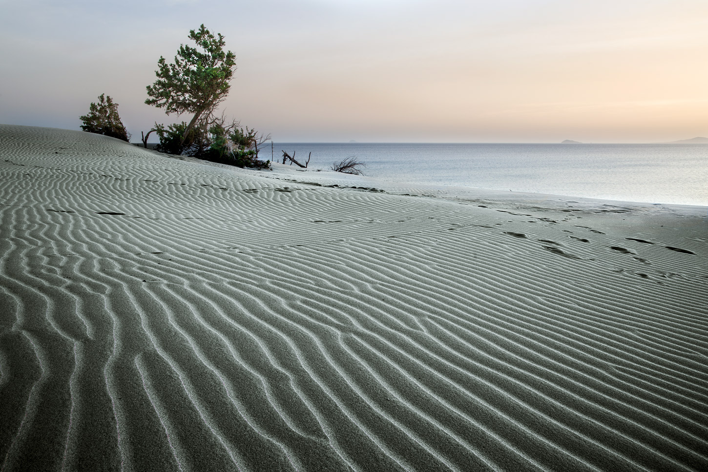 Molto bella, ottima composizione con le linee della sabbia a guidare l'occhio verso l'alberello e il mare di fronte, il tutto condito con belle tinte tenui...Complimenti
