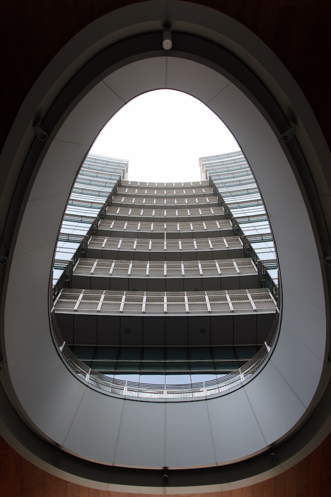 Ottima simmetria, il cielo bianco non mi disturba particolarmente, anzi ha un suo perché, i palazzi sembrano sfumare in questo cielo lattiginoso.