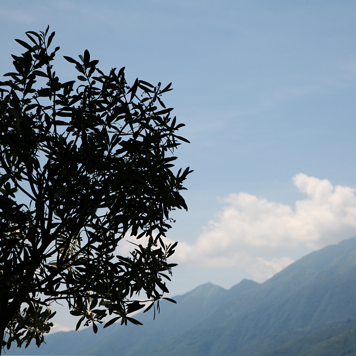 L'inquadratura riproduce la vista di quel momento. Fuori la temperatura stava salendo creando quel velo azzurro che copre tutto. Intanto mi chiedevo se salendoci in montagna si poteva trovare un po' di frescura, ed osservavo le piante del balcone un po' sofferenti/rinsecchite.