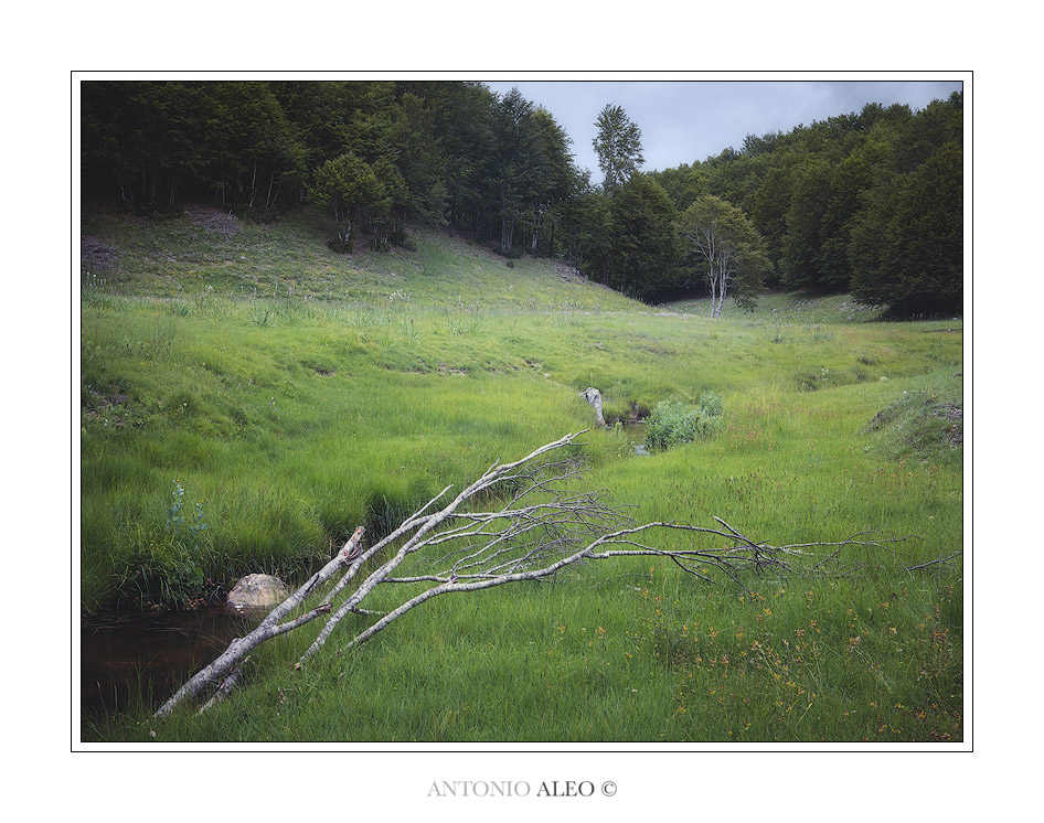 Il ruscelletto e i rami secchi ben posizionati nel frame ti portano dentro questo spazio verde dove si sente il profumo dell'erba fresca e il gusto della montagna...mi piace, ciao _________________