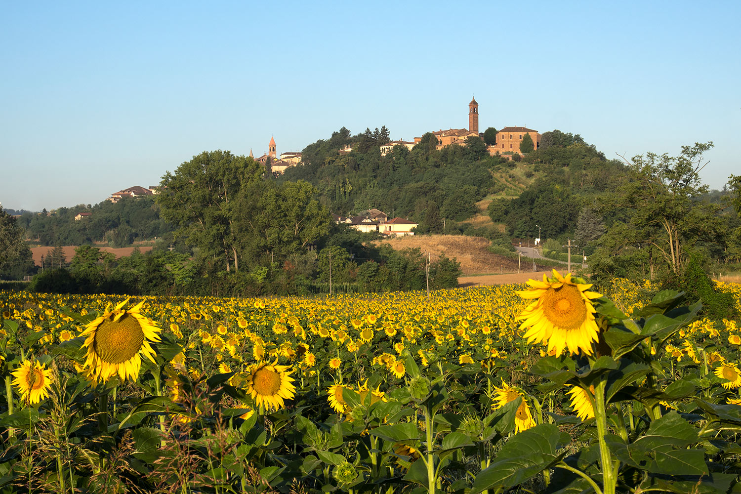 Ottimo l'impatto visivo dei girasole in prima linea con il resto del campo e la minutezza del complesso urbano arroccato sul pendio Ok!