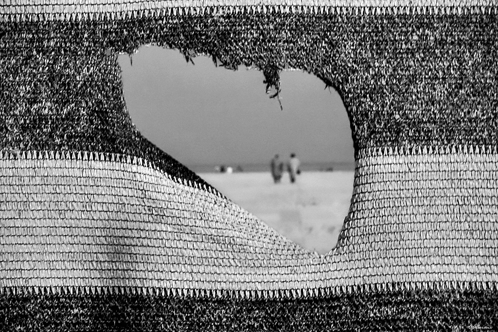 Immagine molto interessante, una coppia, un amore, un cuore, l'accostamento è immediato, però anche a me sarebbe piaciuto di più con a fuoco la coppia, così a mio avviso, seppur parte significativa della scena, il telo impatta troppo anche forse per colpa della sua trama e l'occhio torna immediatamente su di esso e non si focalizza sui personaggi (IMHO)