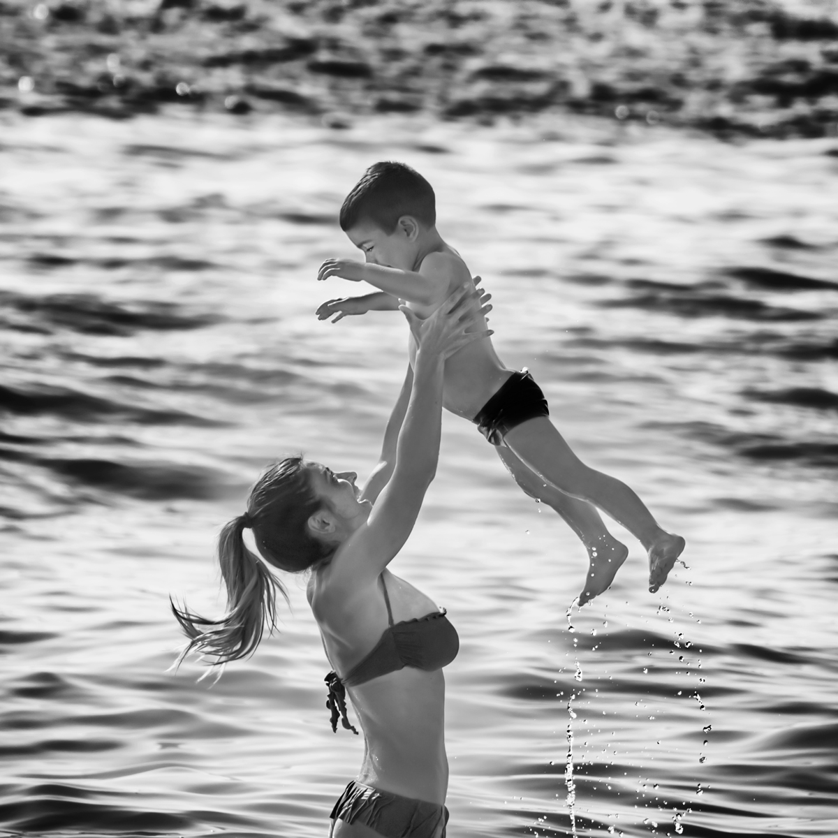 Il mare come un ancestrale liquido amniotico, qui fautore di una nuova nascita... quella che si perpetua ogni giorno nel legame di sguardi fra madre e figlio... ed in tal senso quelle gocce sospese esprimono tutta la meravigliosa forza dinamica dell'atto di venire al mondo: "io to ho chiamato alla Vita e sei qui con me!"