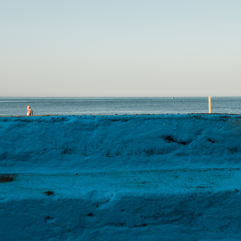Perche' a questo punto non abbassarti fino a togliere il mare, sarebbe stato un bel minimal con l'illusione del mare, dato dal colore del muro....cosi' mi sembra incompiuta.