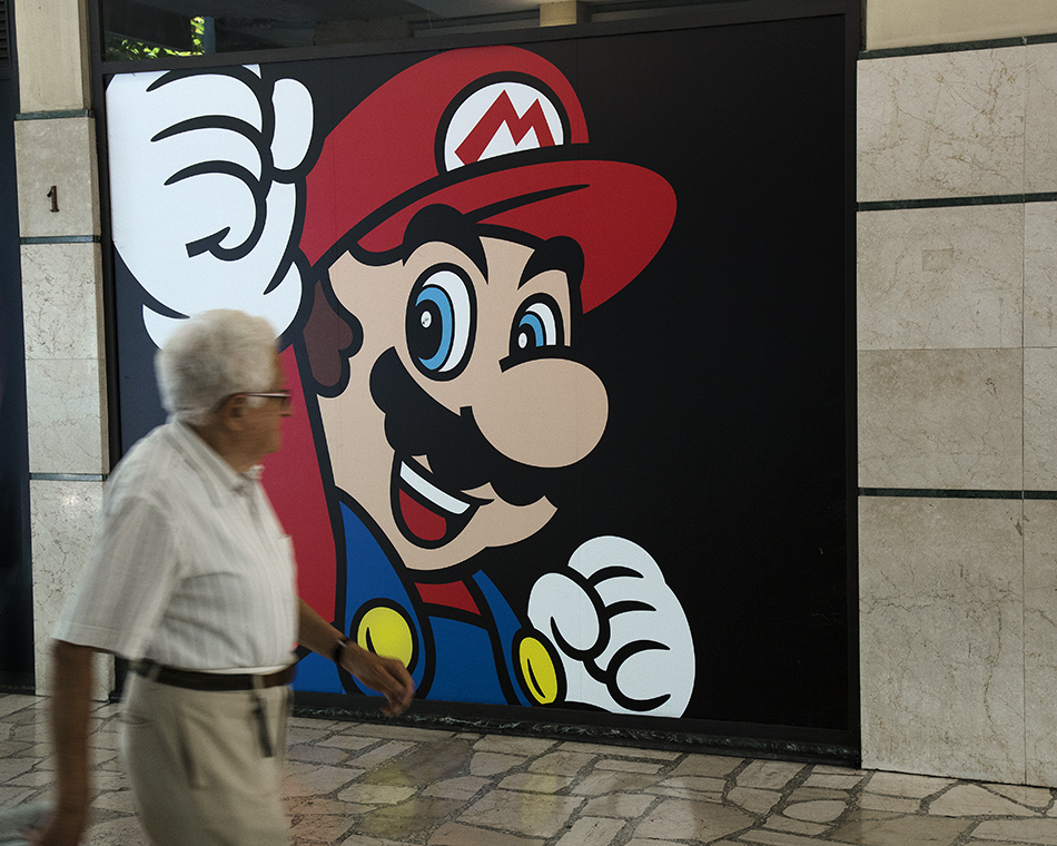Credo che reddo abbia fotografato per il pugno che supermario sta cercando di dare sulla testa del signore che quest'ultimo si affretta per evitarlo...Ciao