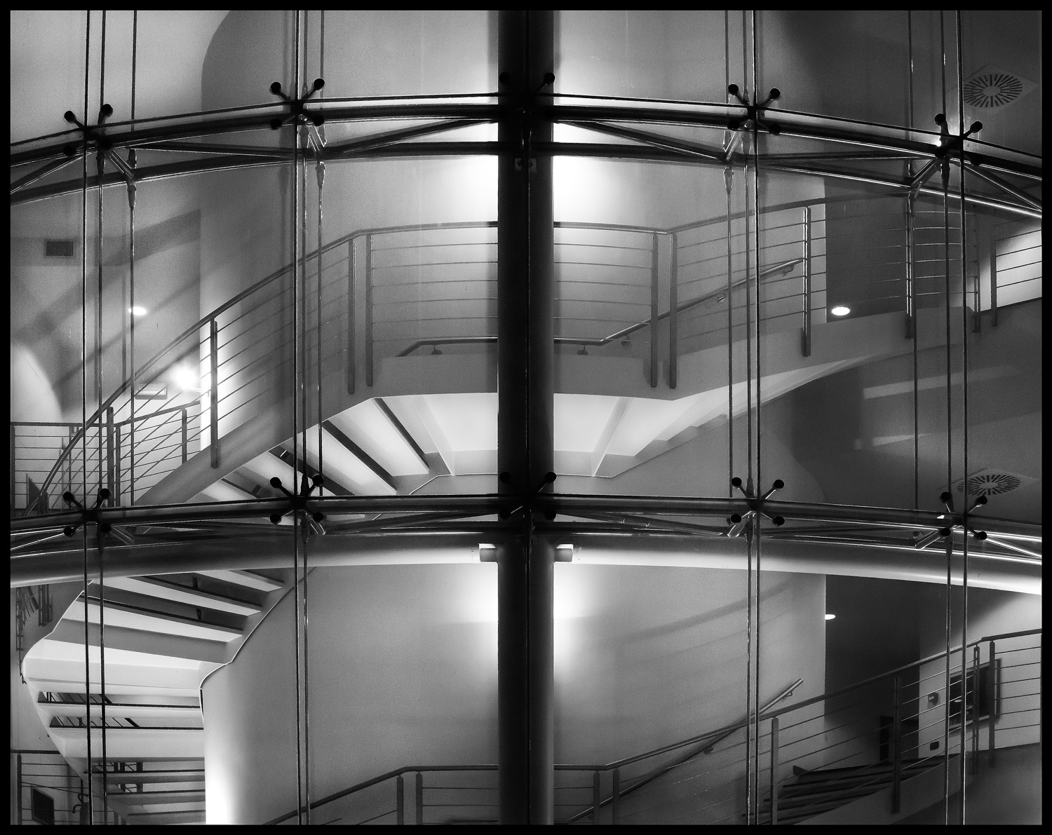 Interessante intreccio di linee, curve, luci e ombre con un attento BN
