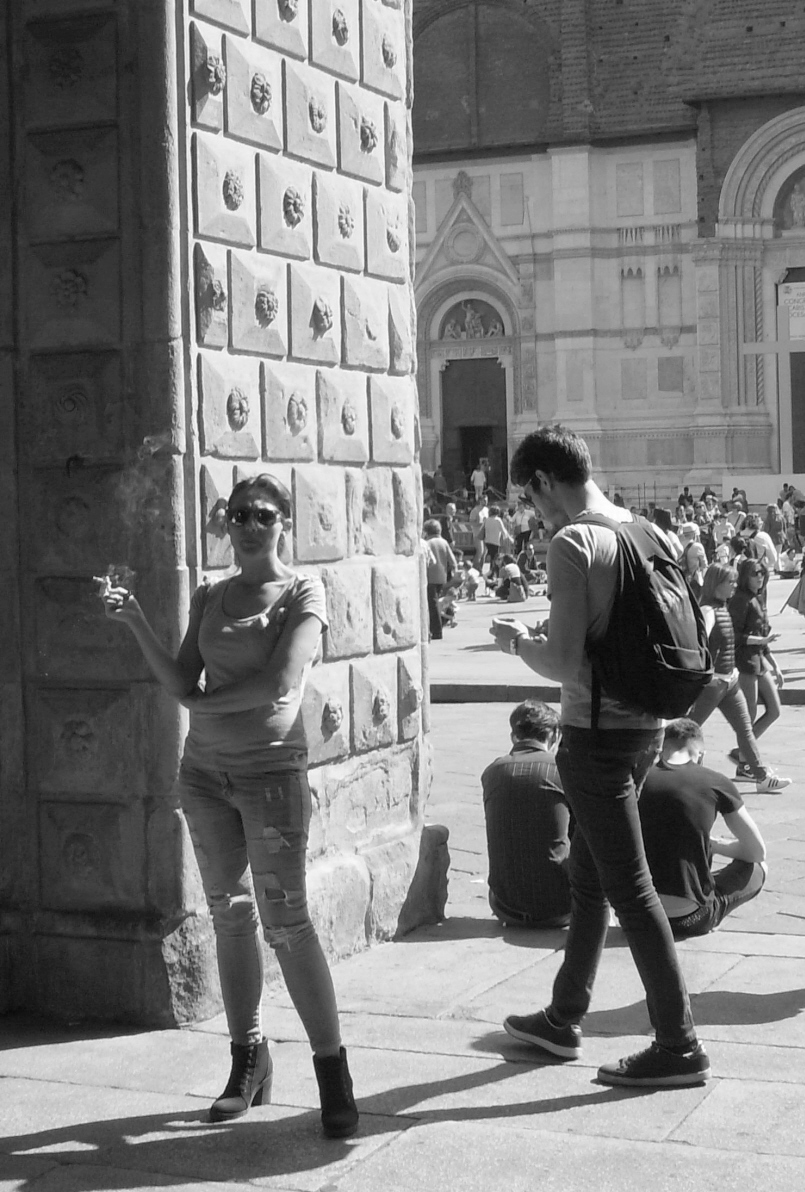 Ciao Filippo credo che la tua preda fosse l'espressione della donna che fuma che in effetti sembra guardarti in cagnesco. Forse per meglio isolare il soggetto potevi cercare di avvicinarti di più Ciao