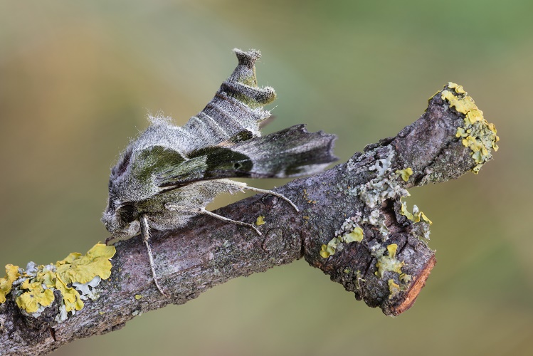 La Sfinge dell’epilobio è una farfalla molto complicata da fotografare. Propongo una vista laterale, che mette in evidenza il curioso addome...
