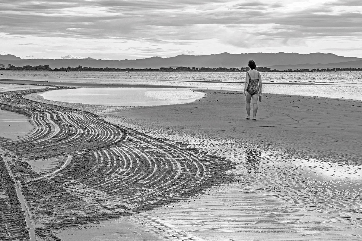 Bianco e nero luminoso cha a me non spiace, evita che le tracce dei pneumatici del trattore non abbiano il sopravvento totale sul paesaggio. Un aumento del contrasto ne cambierebbe in modo netto l'impatto.