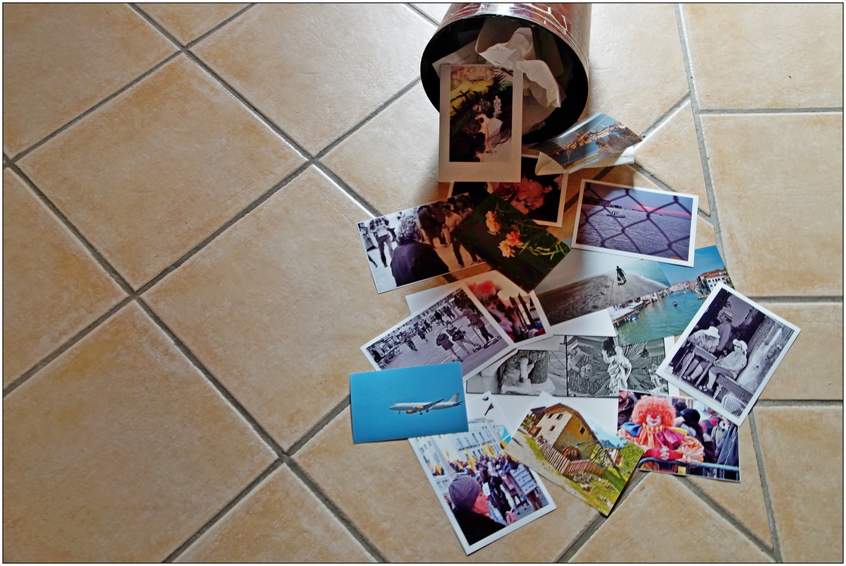 La foto è da archiviare Very Happy ...ma l'idea per niente !! Ok! Trova un pavimento più liscio, più uniforme, cerca di mettere a fuoco bene le foto ( sono tutte un po' sfocate/impastate) studia bene da dove provengono le luci ( il cestino , con la sua ombra, impalla il tutto Smile