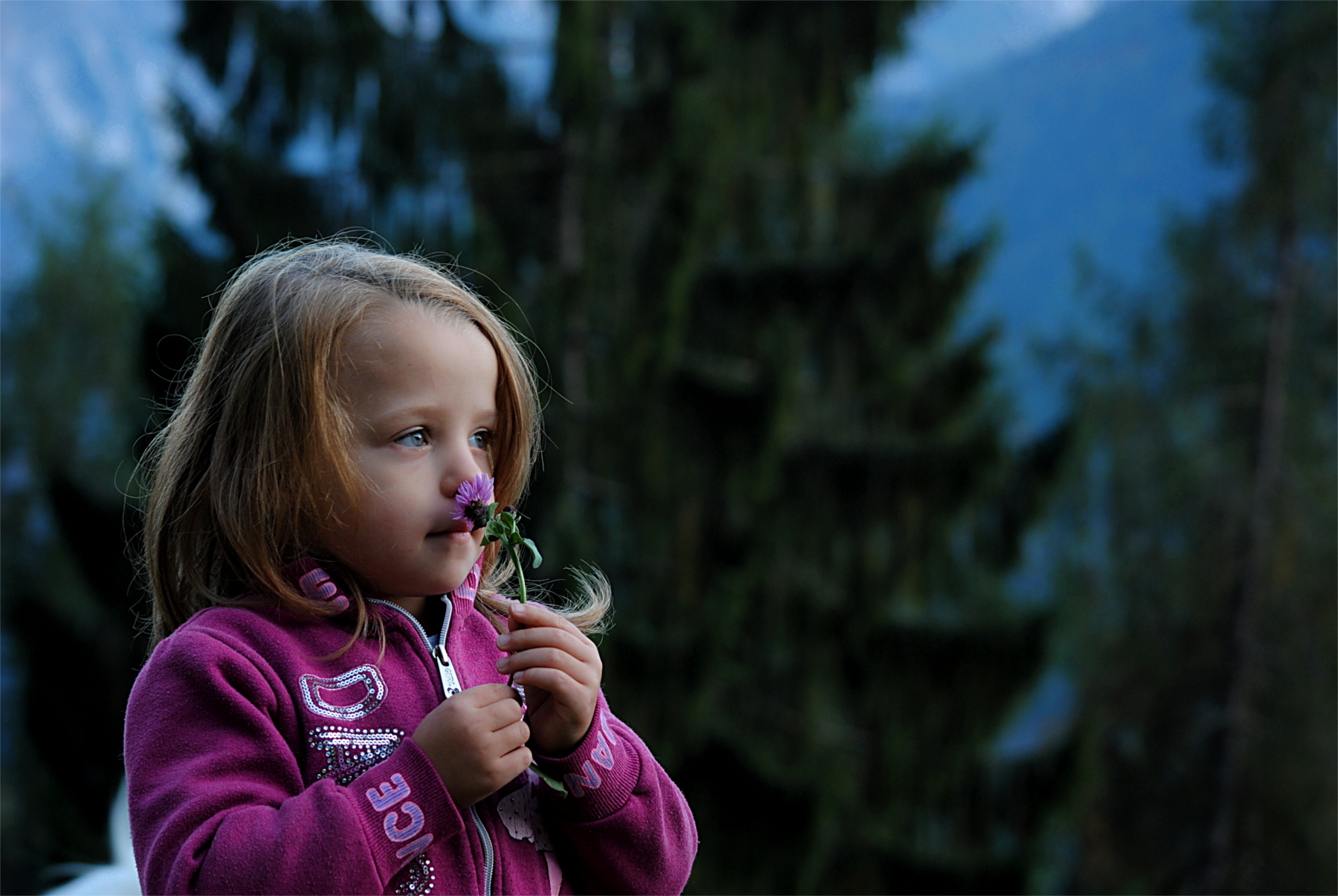 Dolcissima,persa nei suoi sogni di bimba,nei suoi pensieri liberi e leggeri .Composta molto bene,ben staccata dallo sfondo. Da curare un pelino le dominanti ,ma a me piace molto . Brava Ciao