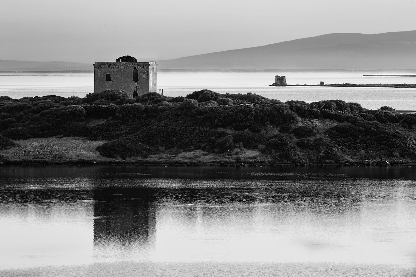 Un silenzioso colloquio tra le due strutture su basi solide, che si confrontano una davanti l'altra tra il mare, e uno sguardo lo si rivolge verso le montagne lontane, come una sicurezza nel futuro, necessaria e indispensabile sempre.