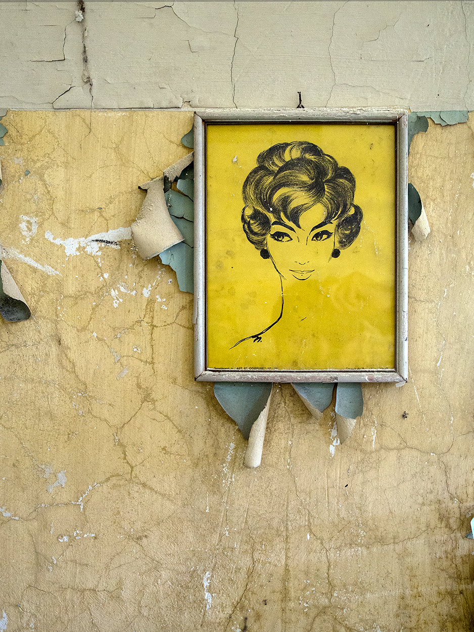 Ciao Stefano, e con questa tocchi una corda dolcissima ahimè lontana , le pettinature tipiche delle mamme anni '50/60 di tante foto . Quel viso rimane fascinosissimo anche sul muro sbrecciato dal tempo come lo rimangono quelle foto su un album che ingiallisce ma che il ricordo ogni volta colora di nuova vita . Mi piace moltissimo la composizione eccellente oltre che la scelta di isolare questo particolare ,la fortuna delle cromie beh, non è ....fortuna (un pò si ) è bravura a vederle .