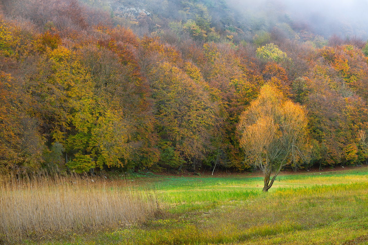 Bella visione dell'autunno: mi piace osservare quell'accenno di nebbie in alto nel fotogramma.
