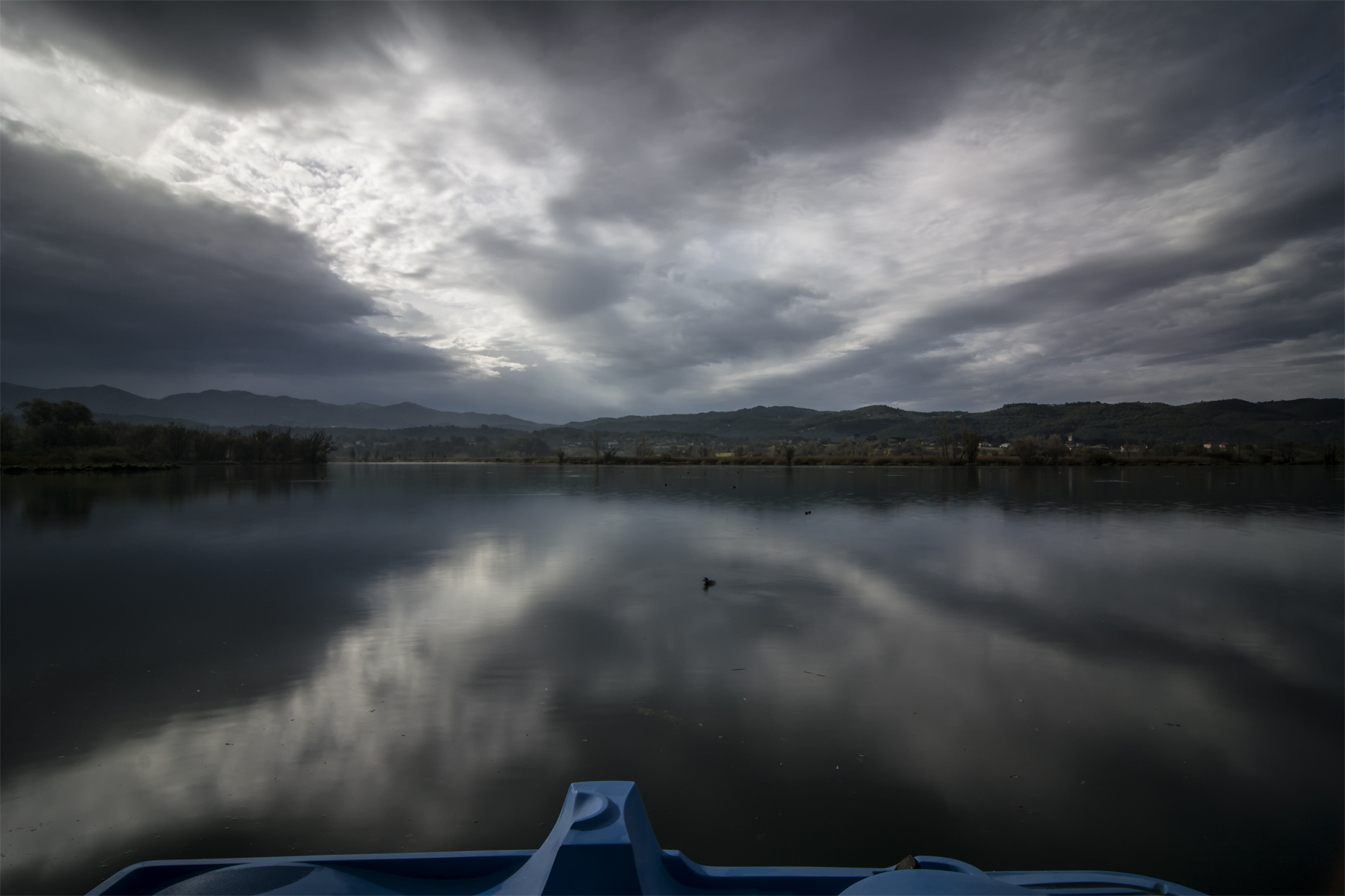 In certi giorni ci si sente un po' così..malinconici,spenti,con il freddo dentro.. e questo emerge,si tira fuori nei modi di comunicare che abbiamo,come la fotografia,o al contrario,lo tiriamo fuori nel modo in cui andiamo a rifugiarci nella lettura di un immagine altrui.. e così accocolata sulla sponda di questo lago persa tra i pensieri questa malinconia la sento , arriva.. ma piano piano lasciando che lo sguardo si perda nella profondità di questo paesaggio, nella bellezza di questi riflessi che insieme alle nuvole convergono portandoci lontano,facendoci accarezzare da queste fredde tinte blu,la malinconia lascia spazio lentamemte ad un senso di quiete profonda,di pace,una pacata serenità..e poi arriverà il sole a scaldare tutto... Il pedalò si o no?non lo so,ci devo pensare... da un lato ha il suo perché,ma la pulizia e i disegni di cielo e acqua non so,forse bastavano da soli.