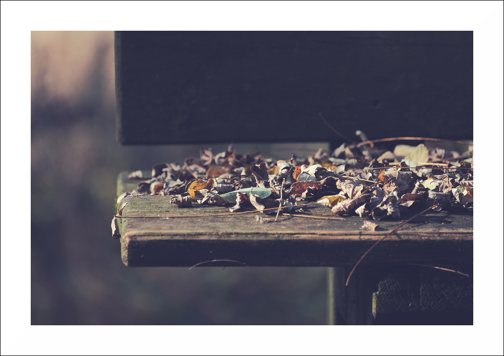 Autunno accomodato sulla panchina ormai abbandonata, sembra attendere di far accomodare qualche passante.